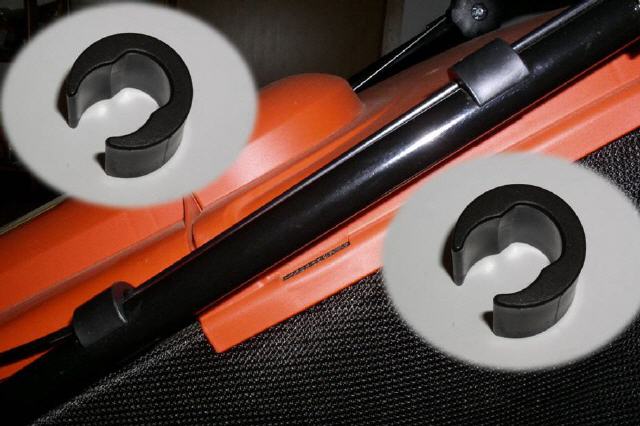 Die Bowdenzughalter können am Holm einfach in die gewünschte Position verschoben, mühelos entfernt und bei Bedarf wieder montiert werden (praktisch beim Holm-Einklappen bzw. Transport). Ideal für Holm-Durchmesser von ca. 22 mm.