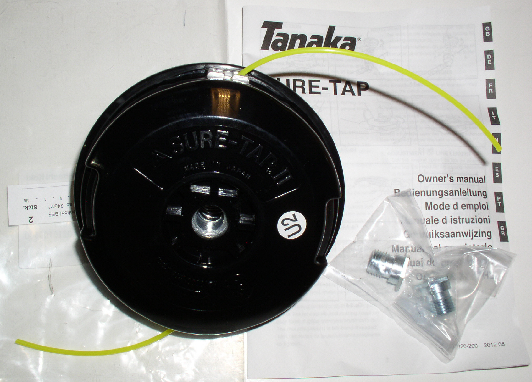Der BF 5 ist mit einer Mutter im Fadenkopf ausgestattet (M14 x 1,5 Linksgewinde). Mitgeliefert werden 2 Gewindebuchsen, die in dieser Mutter hereingeschraubt werden können (Gewindebuchse M8- u. M10 x 1,25 Linksgewinde). Dieser Fadenkopf passt daher an Hitachi-/Tanaka-Sensen mit einer Schraube am Winkelgetriebe für die Werkzeugaufnahme mit M8- oder M10 x 1,25 Linksgewinde. Bitte achten Sie daher auf den Anschluss/Aufnahme an Ihrer Motorsense. Einige ältere Tanaka-Modelle sind z. B. mit einer Mutter M8 x 1,25 links im Winkelgetriebe ausgestattet. Hier ist ein passender Gewindebolzen, der ebenfalls in diesem Fadenkopf hereingeschraubt werden kann, nötig (Gewindebolzen M8 x 1,25 Linksgwinde, im Shop unter Produkt-ID: HI-6689621204).