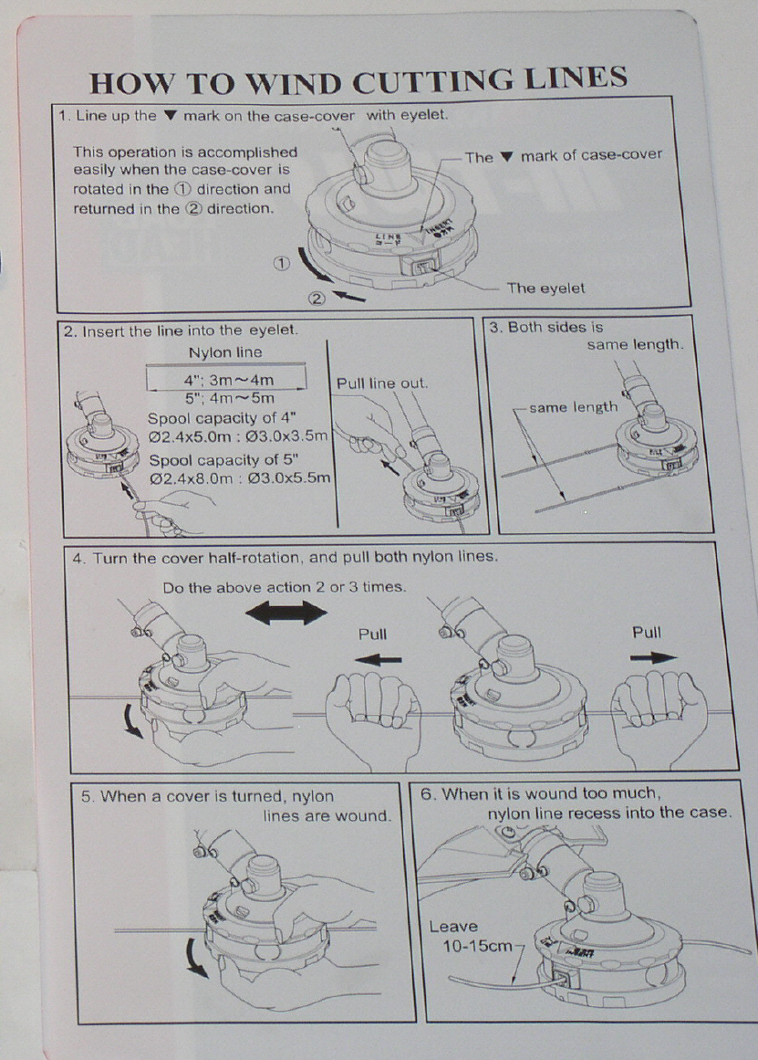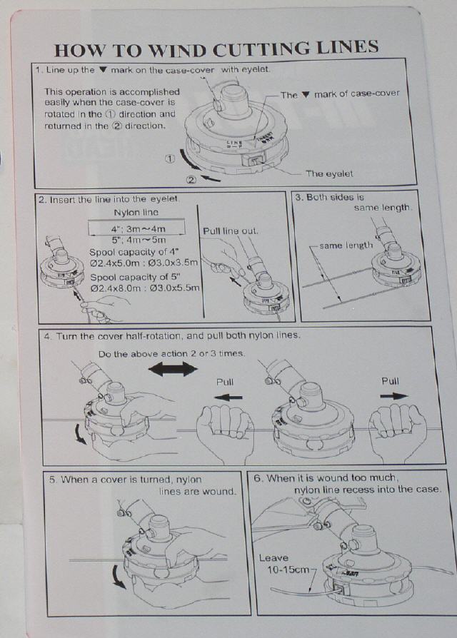 Aufwickeln des Nylon-Schneidfadens (Kopf muss zum Fadenwechsel Nicht demontiert werden)