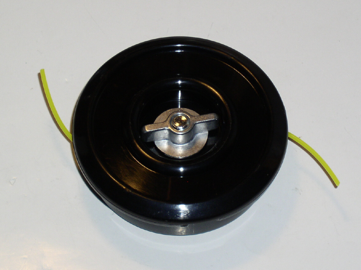 Manueller Fadenkopf: Muss zum Fadenwechsel demontiert werden (Flügelmutter abschrauben, Spule neu bewickeln und schließen, fertig).