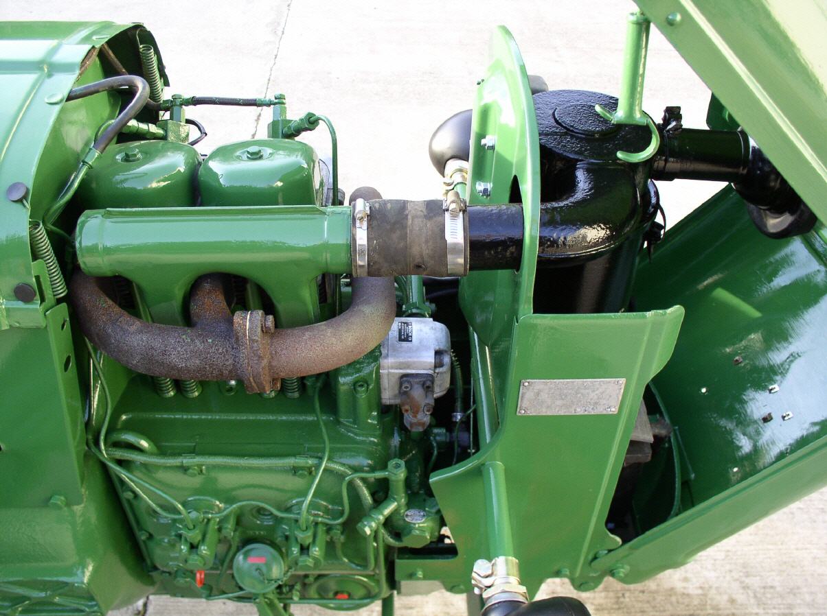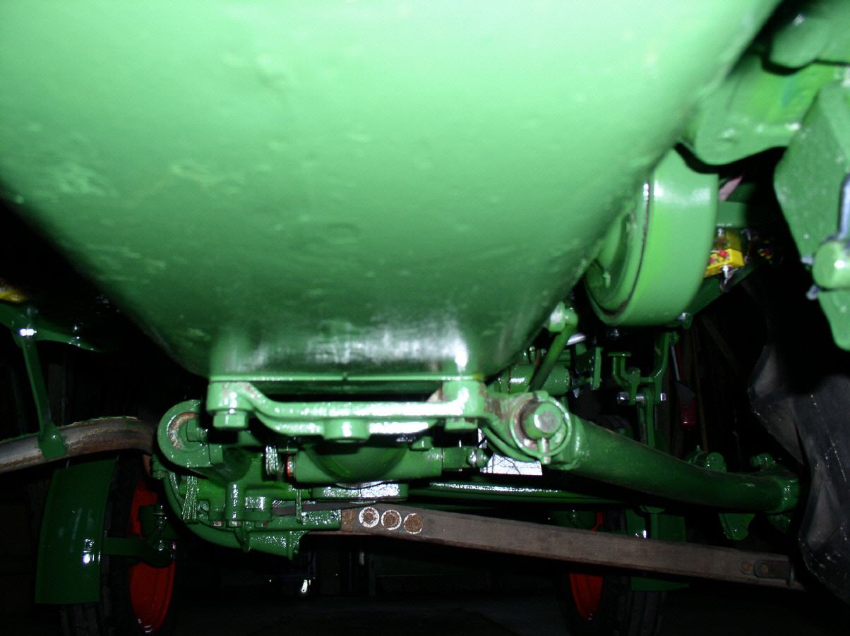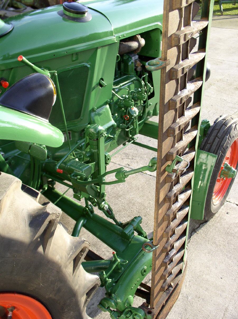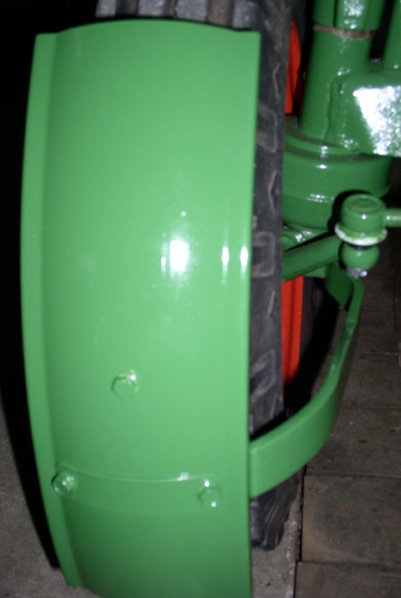 Schlepper gründlich gereinigt (u. a. festsitzenden Schmutz mit Drahtbürste u. Spachtel an Teilen entfernt etc.), Kotflügel gerichtet u. Schadstellen geschweißt, Lager Achstrichter rechts gewechselt, Bremsen gereinigt u. eingestellt, 3-Punktgestänge instandgesetzt (Hubstreben, Unterlenker), Spannschlösser instandgesetzt, Seitenmähwerk instandgesetzt, Klingen aufgenietet, Abweisbügel gefertigt, Keilriemen für Antieb Mähwerk gewechselt, Drehzahlverstell-/Abstellhebel instandgesetzt, Schauglas Hydrauliköl abgedichtet, Ventildeckel gereinigt, Ventile eingestellt, Ventildeckeldichtungen gewechselt, Hydraulik-Zylinder für Mähwerk abgedichtet u. montiert, Embleme u. Schriftzüge an Haube + Schlepper angepasst u. montiert, Schutz vom Mähwerk instandgesetzt, E-Anlage instandgesetzt (Blinkgeber, Warnblinkgeber, Glühanlassschalter, Glühüberwacher, Signalhorn, Blinkerkappen, Halter, Blink- u. Positionsleuchten, Blink- u. Rückleuchten, Lampen vorn, Bremslichtschalter, Öldruckgeber, E-Kabel, Schellen für E-Kabel montiert u. angeschlossen), Batteriehalterung angefertigt u. montiert, Deckel Schalthebel/-kulisse abgdichtet, Schalthebelmanschette montiert, Deckel Öleinfüllstutzen gewechselt, Auspuff instandgesetz u. montiert, Gestänge für Gas u. Motorstop instandgesetzt u. eingestellt, neue Kotflügelhalter vorn gerichtet u. neue Kotflügel vorn montiert, Zapfwelle hinten abgedichtet, Schaltwelle für Zapfwelle hinten abgedichtet (Einschalthebel), Zapfwelleneinschaltung für Mähwerk abgedichtet , Gleitkufe Mähwerk montiert, Gas- u. Bremsfedern angepasst u. montiert, Lenk- u. Spurstange gewechselt, Tankfilter gewechselt, Luftfilter gereinigt u. montiert, Vorderradlager nachgestellt, Spiegelhalterung angefertigt, Spiegel montiert, gebrauchte Reifen hinten montiert, Senkdrossel instandgesetzt, Getriebe Unterlenkerverstellung instandgesetzt (Axiallager neu montiert), Motoröl gewechselt, Getriebeöl gewechselt, Hydrauliköl gewechselt, Luftfilteröl gewechselt, Lenkgetriebeöl kontrolliert, Keilriemen Motor gewechselt, Dichtmanschette für Zusatzsteuergerät gewechselt, Hubarme Krafthebeblock li. u. re. abgedichtet, Öldruckgeber gewechselt, Farbgebung des Schleppers (Motor, Getriebe, Sicherheitsbügel, Kotflügel vorn u. hinten, Trittbleche, Haltebleche, Tankhaube, Motorhaube, Mähwerk mit Anbauteilen, Sitzschwinge, Sitzschale, Unterlenker, Hubstreben, Spannschlösser, Luftfilter, Felgen vorn u. hinten, Sitzbügel, Anhängezugmaul, u. viele Kleinteile gereinigt, entrostet, mit dem Pinsel grundiert + Farbgebung), Schlepper abgeschmiert.