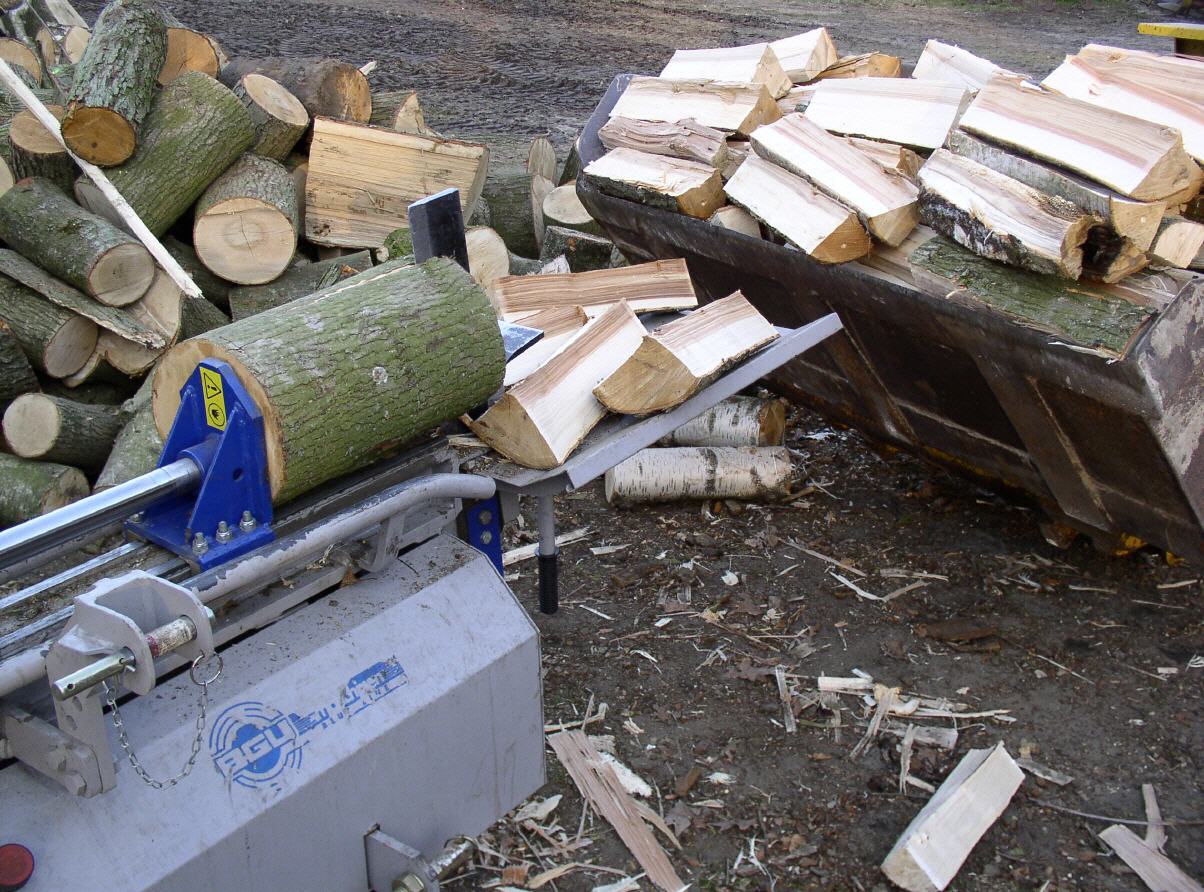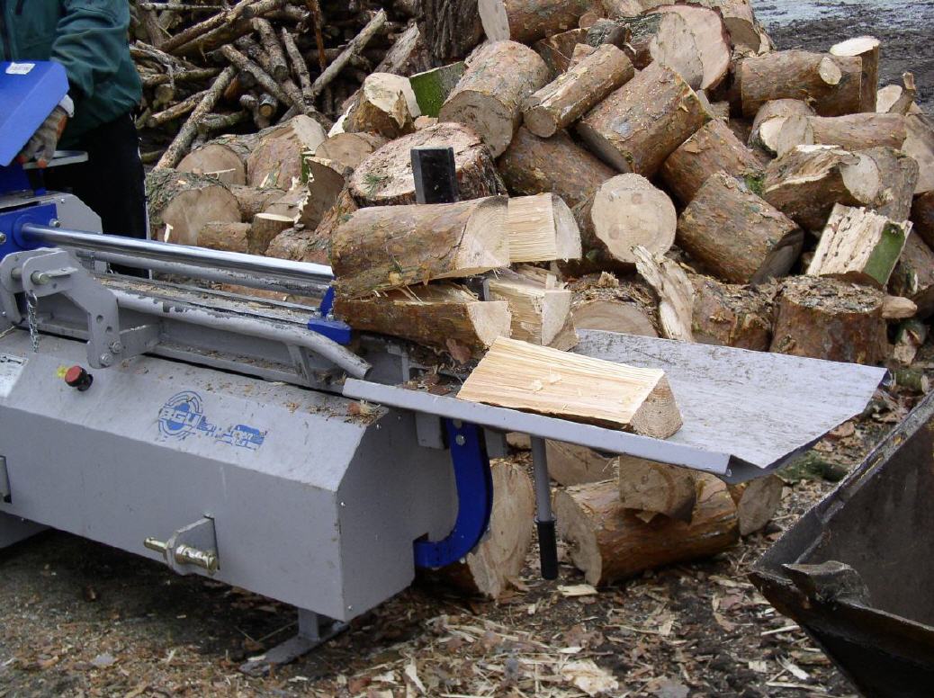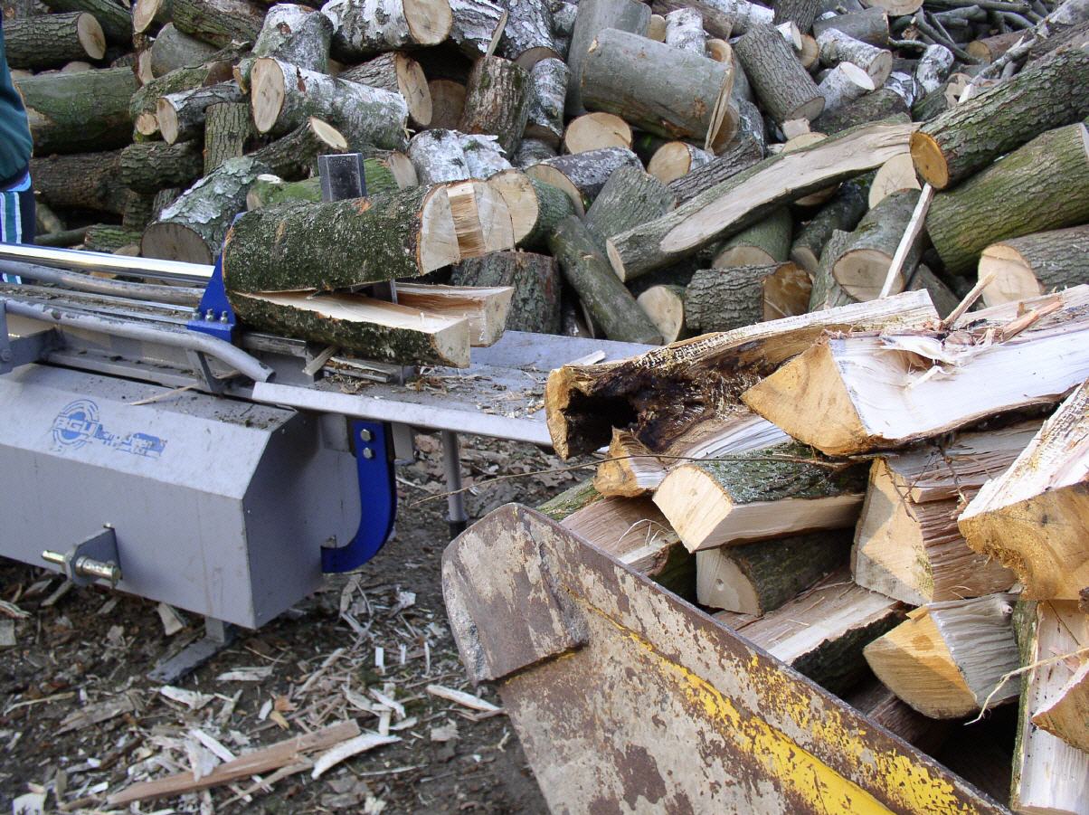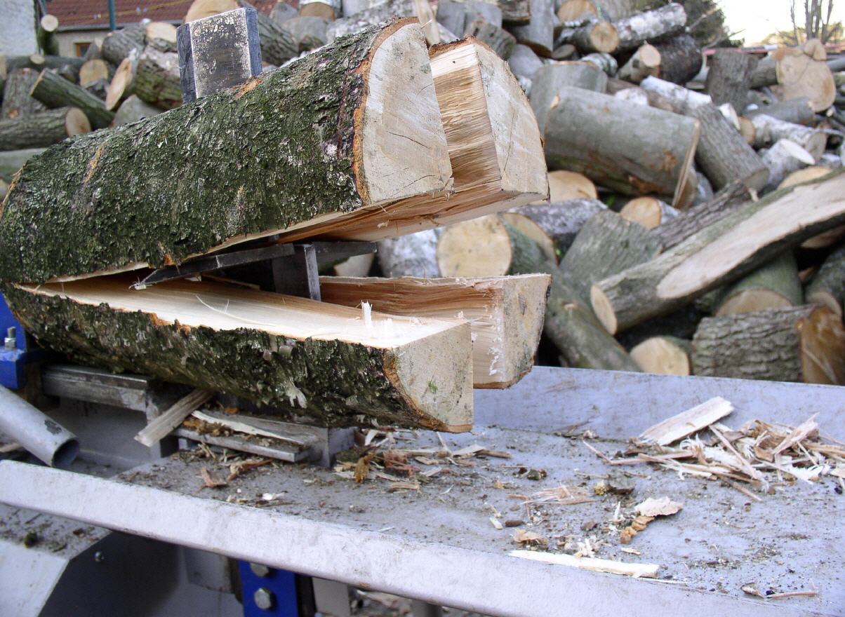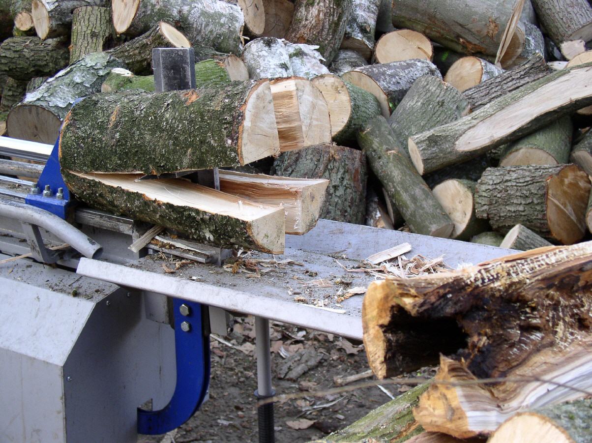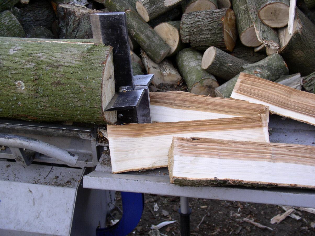 - - stärkere Stämme können durch mehrmaliges Einlegen in ofenfertige Scheitgrößen gespalten werden