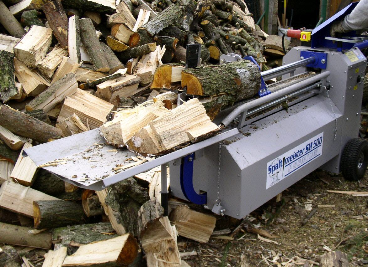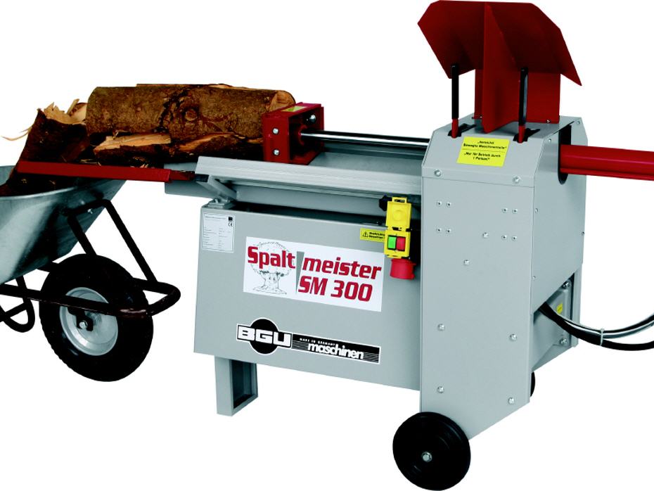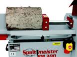 Nicht nur die Maschine, auch der Preis überzeugt. Einfachste Bedienung und größte Sicherheit durch den liegend angeordneten Spaltmechanismus zeichnen den Spaltmeister SM 300 - 400 V aus. Er ist ein idealer Helfer für den Kamin- oder Kachelofenbesitzer und wird mit Starkstrom betrieben. Dank der horizontalen Bauweise entfällt das Festhalten des Stammes. Durch das Nachschieben eines weiteren Stammes wird ein schneller, flüssiger Arbeitsablauf gewährleistet. Das gespaltene Holz kann über den Ablagetisch direkt in einen Wagen oder Korb geschoben werden. Mittels einer Kreuzgriffschraube kann die Länge des Spaltweges auf die gewünschte Stammlänge eingestellt werden. Als Zubehör ist ein aufsteckbares Spaltkreuz (lässt sich auch in der Höhe verstellen), eine Spaltkeilverbreiterung und ein Fahrwerk ("Perfekt Plus", mit Lenkrolle vorn, Lufträdern hinten und 4er Spaltkreuz mit Handgriff) für z. B. leichtes Transportieren auch auf unebenem Pflaster erhältlich.