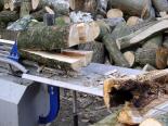 - - Einfaches Vierteln der Stämme mittels hydr. verstellbarem Spaltkreuz.