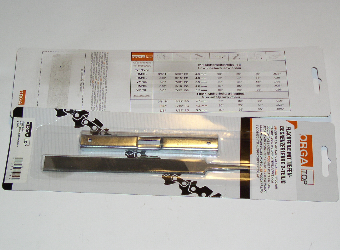 - Vollständiges Feilensystem zum feilen des Tiefenbegrenzers nach dem Sägeprozess, um das volle Leistungspotenzial der Sägekette wieder herzustellen.