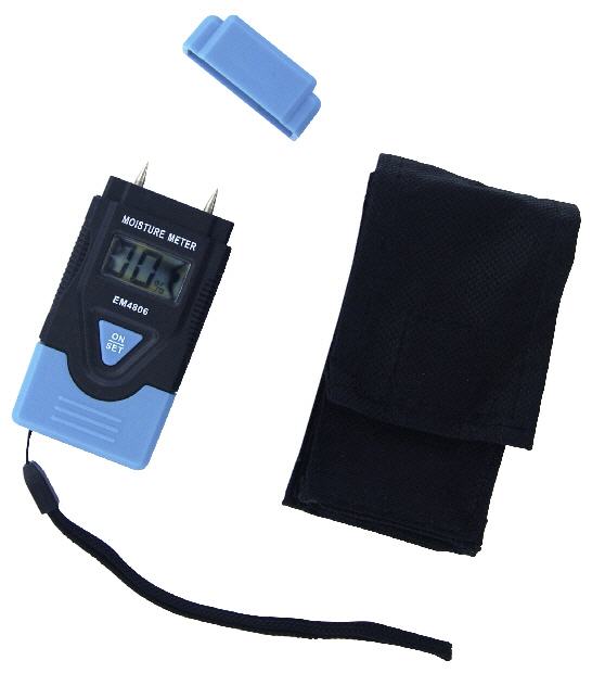 Dieses Gerät kann benutzt werden, um den Feuchtigkeitsgrad von gesägtem Holz (sowie Papier oder Karton) und gehärtetem Material (Mörtel, Zement und Gips) zu messen. Es zeigt den Feuchtigkeitsgrad direkt an. Ausserdem kann das Gerät benutzt werden, um die Umgebungstemperatur anzuzeigen. Es ist tragbar, sehr einfach zu benutzen, leicht und hat geringe Abmaße. Mit automatischer Abschaltung. Batterie: 4 x LR44 (1,5 V).