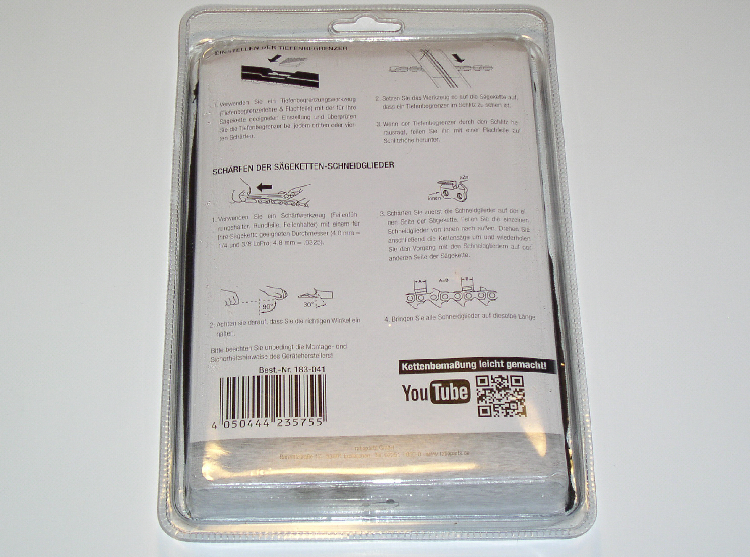 - für Sägeketten: 1/4 Zoll (Vollmeißel und Halbmeißel) und 3/8 Zoll Hobbyketten (Halbmeißel)