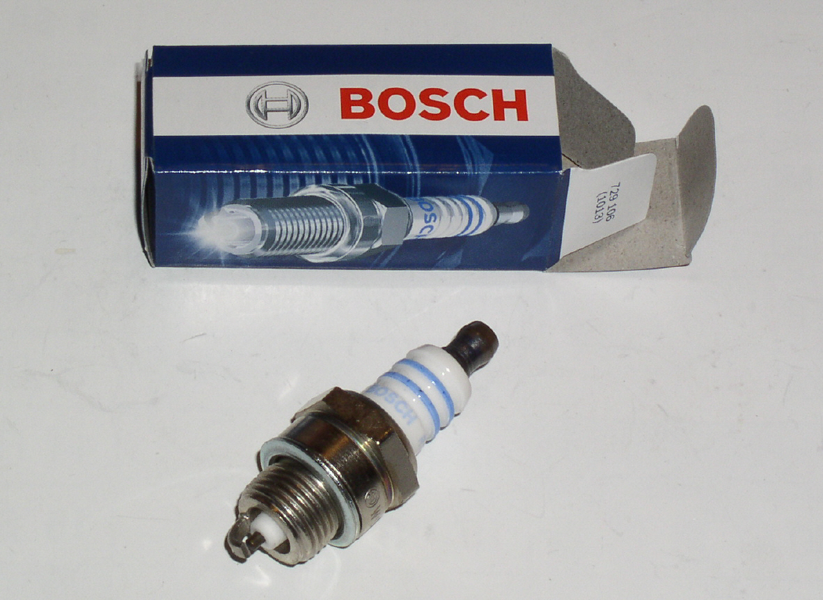 Zündkerze WSR6F - von BOSCH - Resistor entstört: ja - Gewindegröße: M14 x 1,25 mm - Gewindelänge ca.: 9 mm - Gesamtlänge ca.: 52 mm - Schlüsselweite: 19 mm - befindet sich oft in Motorsägen u. Motorsensen