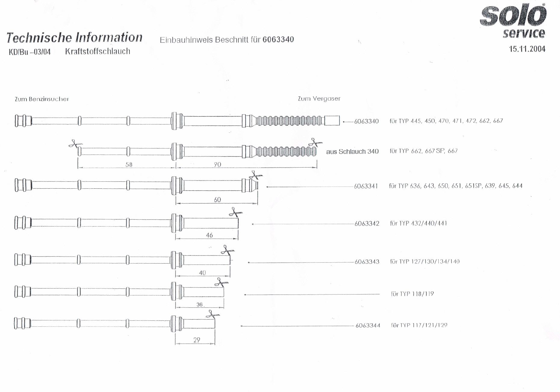 Kraftstoff-Schlauch 3x238 SOLO, für 445, 650 u. a.