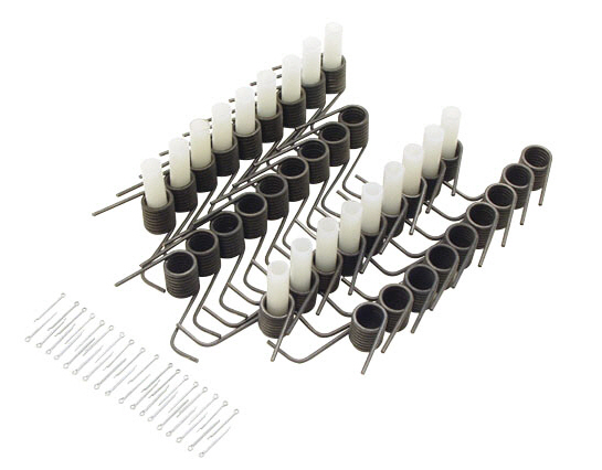 Lieferumfang: 18 Federn links und 18 Federn rechts, 18 Hülsen und 36 Splinte