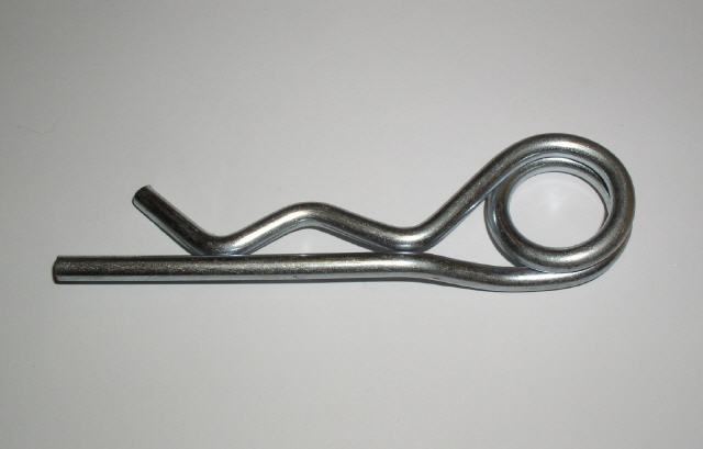 Federstecker 160 mm - Material: Stahl, verzinkt - Bolzen-Ø: 7 mm - Bolzenlänge ca.: 95 mm - Gesamtlänge ca.: 160 mm - Innen-Ø Lochkreis ca.: 28 mm - geeignet für Wellen-Ø von ca. 26 bis 40 mm