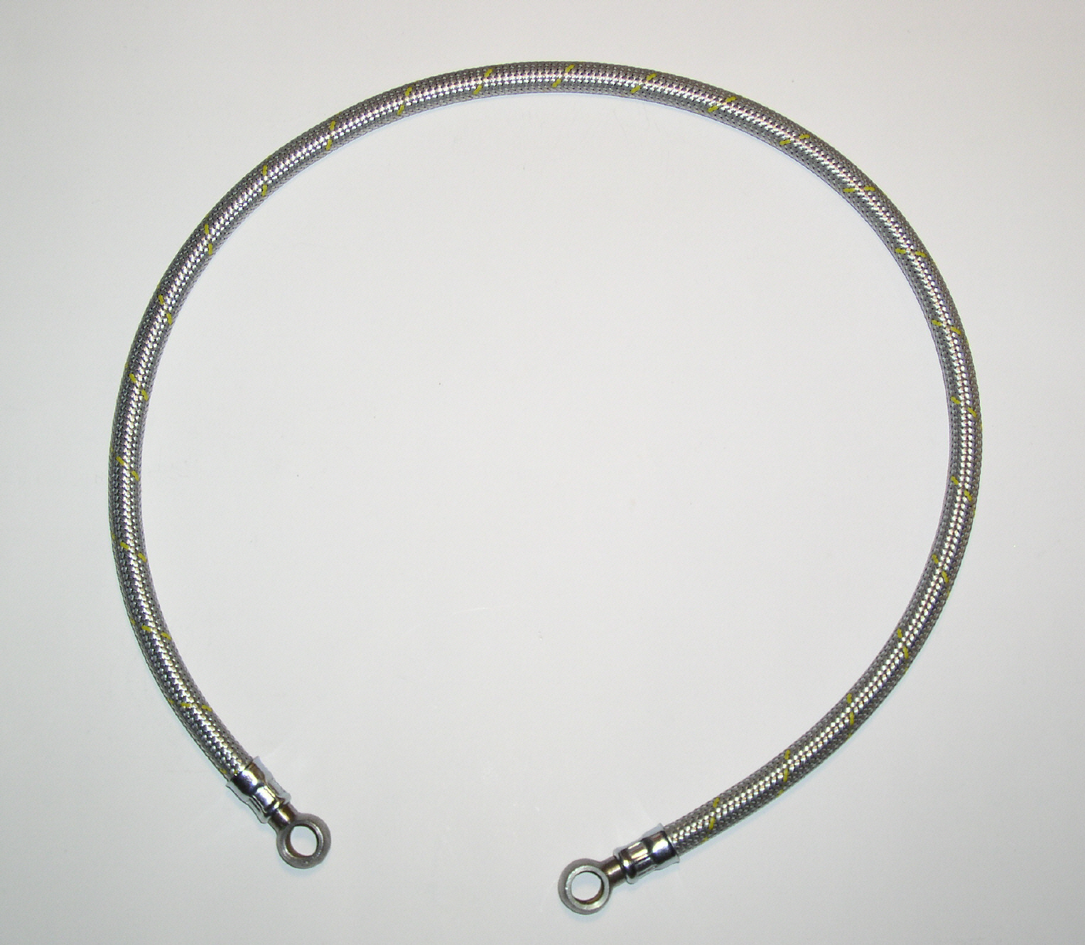 - flexible Kraftstoffleitung (verzinkte Stahlumflechtung) für Verbindung Kraftstofftank zu Kraftstoff-Einspritzpumpe (längere Leitung von 2), passend für Schlepper Deutz D 25, D 30 u. a., inkl. Kupferringe für Abdichtung