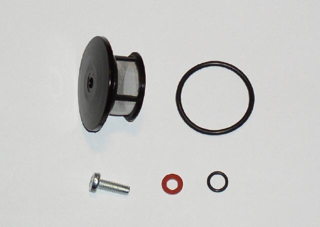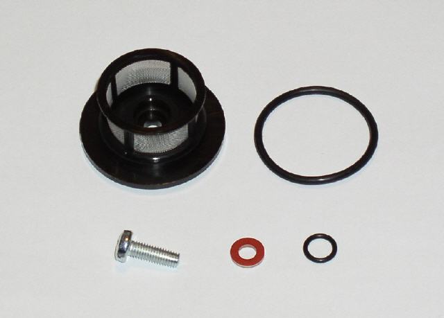 Lieferumfang: Sieb mit Schraube, 2 x Gummidichtring (groß/klein), 1 x Dichtung rot