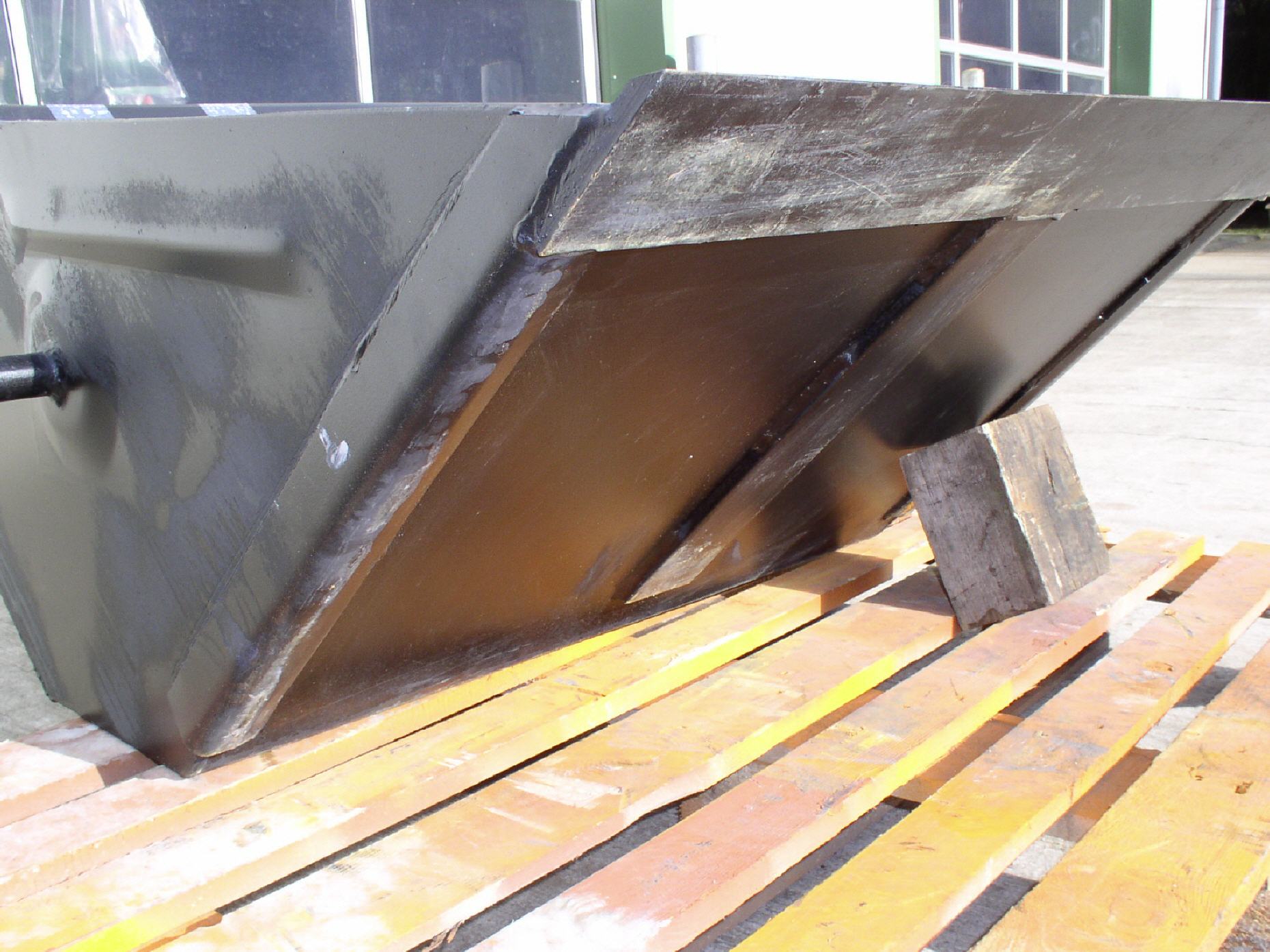 - Verstärkung durch Winkelstahl, Flachstahl u. Sicke. Mit Schürfleiste.