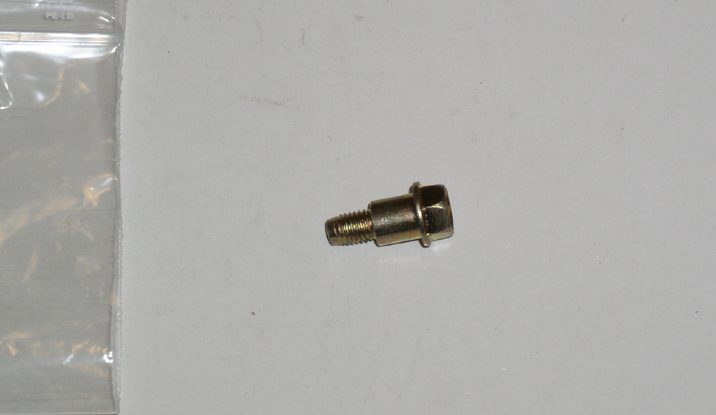 Die Öse des Bowdenzugs wird mit dieser mitgelieferten, selbstschneidenden Schraube befestigt - neue Bauart (Schraube wird einfach in die Bohrung (alte S-Haken-Befestigung) im Hebel für Mähwerkeinschaltung reingeschraubt, vorher Öse einfädeln nicht vergessen). Die alte Bauart mit S-Haken wurde durch diese Bauart "mit Öse und Schulterschraube" ersetzt.